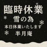 2月9日(月)にかけて雪は止む予報ですが朝まで氷点下が続く予報の為、店を開ける事が困難と判断いたしました。その為臨時休業と致します